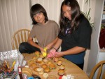 To help celebrate his birthday, Debbie worked late into the night baking cupcakes. Then she and the kids worked hard this morning transforming them into “hamburger” cupcakes to take to Chris’ class. They turned out great.