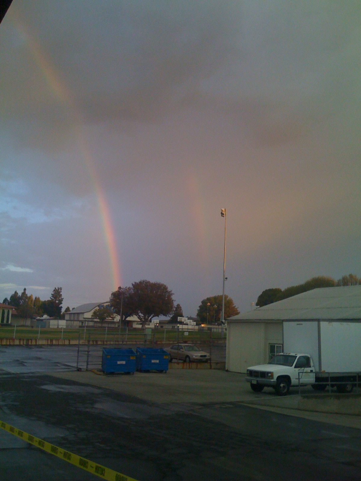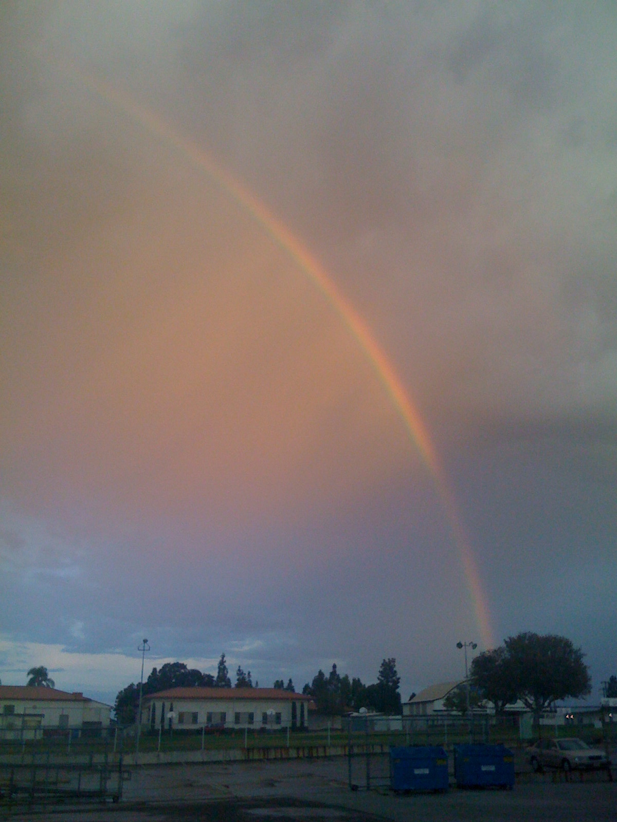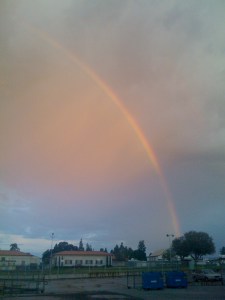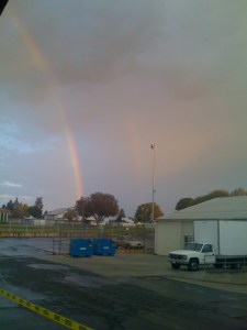 Nice rainbow pictures. The one we saw was very wide and bright. But we only saw one short end of the rainbow as it was touching down on the foothills. Then Chris and Dani said that they saw the double rainbow (again, just the end of it.) Very pretty treat. A reminder of God’s promise.