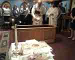 “Without seeking to avenge or even to defend himself, the innocent Metropolitan left for Athens, where he found that accusations of immorality had arrived before him. Because his good name had been soiled, he was unable to find a position worthy of a bishop, and in February of 1891 accepted the position of provincial preacher in Euboia; then, in 1894, he was appointed dean of the Rizarios Ecclesiastical School in Athens. Through his eloquent sermons, his unwearying labours to educate fitting men for the priesthood, his generous almsdeeds despite his own poverty, and the holiness, meekness, and fatherly love that were manifest in him, he became a shining light and a spiritual guide to many. At the request of certain pious women, in 1904 he began the building of his convent of the Holy Trinity on the island of Aegina while yet dean of the Rizarios School; finding later that his presence there was needed, he took up his residence on Aegina in 1908, where he spent the last years of his life, devoting himself to the direction of his convent and to very intense prayer; he was sometimes seen lifted above the ground while rapt in prayer. He became the protector of all Aegina, through his prayers delivering the island from drought, healing the sick, and casting out demons. Here also he endured wicked slanders with singular patience, forgiving his false accusers and not seeking to avenge himself. Although he had already worked wonders in life, an innumerable multitude of miracles have been wrought after his repose in 1920 through his holy relics, which for many years remained incorrupt. There is hardly a malady that has not been cured through his prayers; but Saint Nectarius is especially renowned for his healings of cancer for sufferers in all parts of the world.”